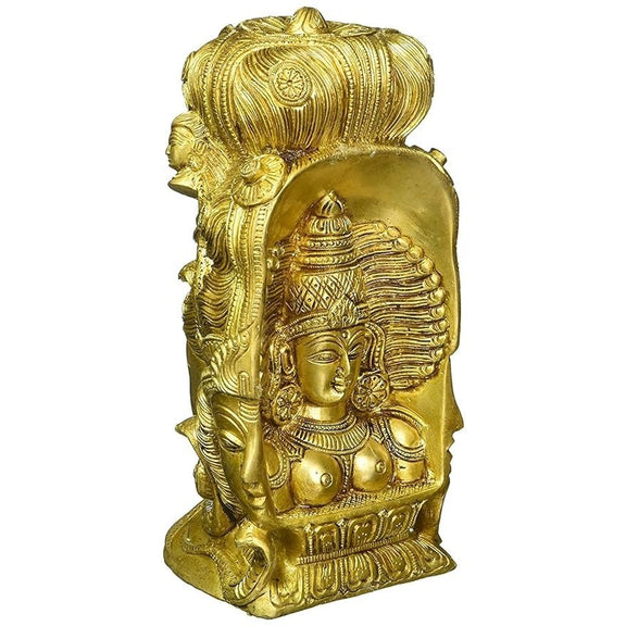 Brass 8.1" Three Face of Shiva with Goddess Parvati Face (with Top of The Head Goddess Ganga)