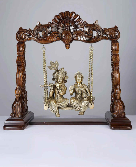 Brass And Wood Radha-Krishna Statue on a Swing 20 inches