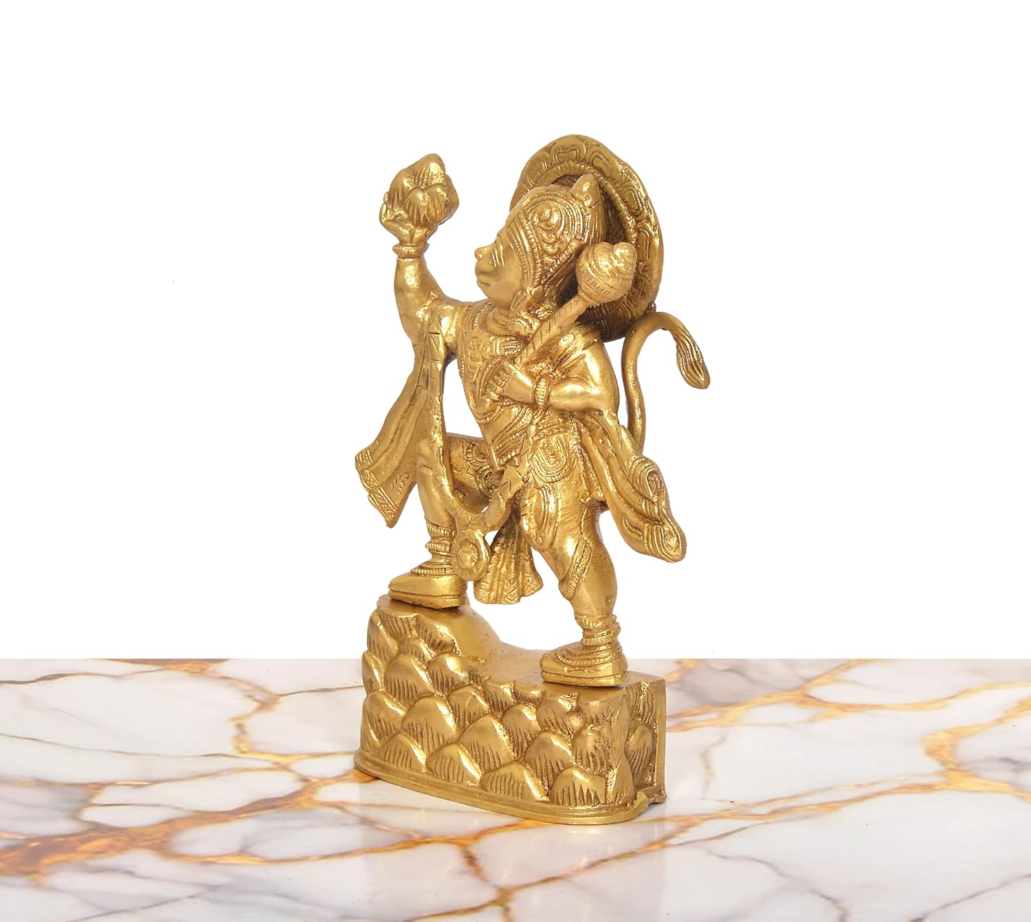 Celebrate the mighty power of Bajrangbali with this stunning brass Hanuman statue, standing 8 inches tall with an iconic mountain base. This devotional masterpiece honors the courageous son of Pavan, capturing his heroic spirit and unwavering dedication. Crafted with loving attention to detail, the brass sculpture gleams with spiritual significance, making it an ideal centerpiece for your puja room or meditation altar. Whether you seek blessings of strength, courage, or divine protection, this sacred murti invites Hanuman's compassionate presence into your home and heart.