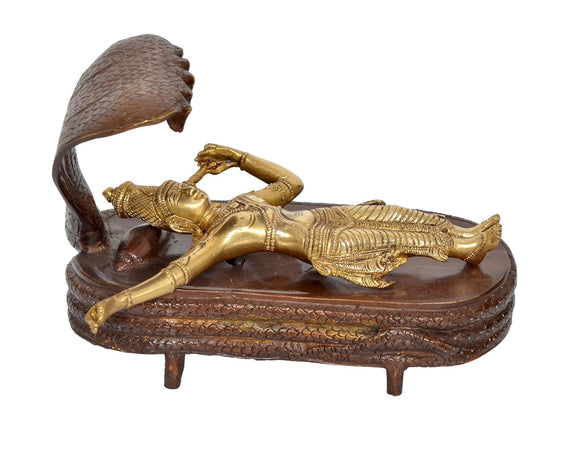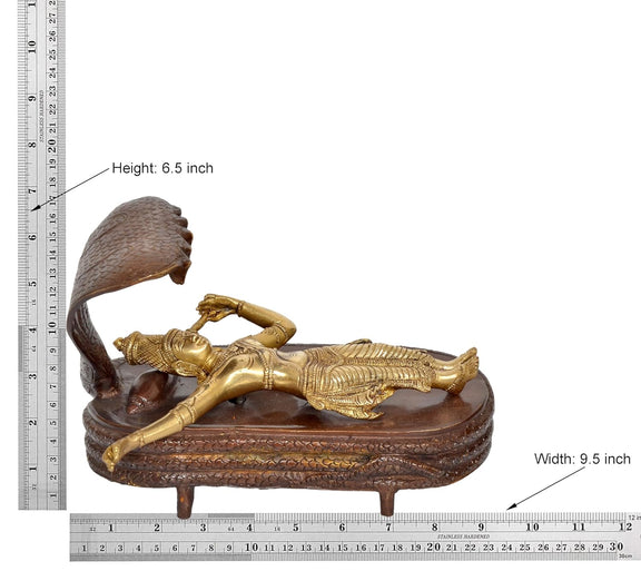 Brass Bhagawan Vishnu in Yoga Nidra for Home Temple Pooja Mandir Decor (Height : 6.5 inch)