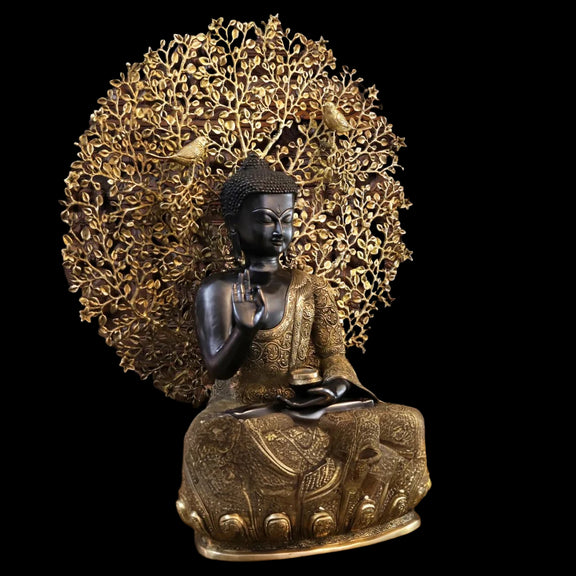 Brass Black Buddha seating With Tree Statue (Height: 30 Inches)