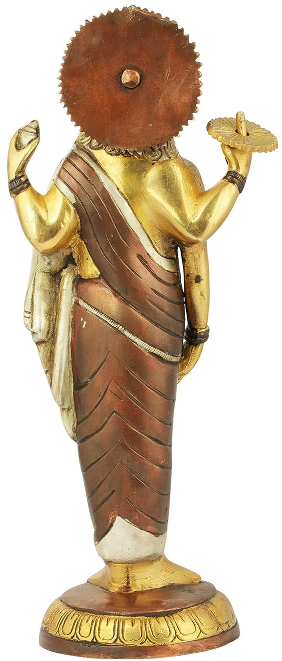 Brass Brown Silver Gold Dhanvantari Statue - The Physician of Gods (Height: 11.3 inch)