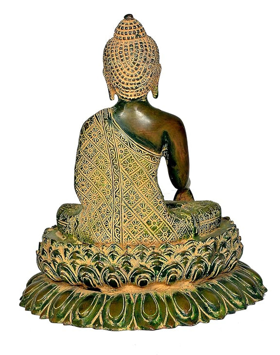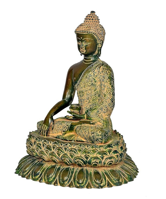 Brass Buddha Statue On Lotus Base for Home Decor (Height: 12 Inches)