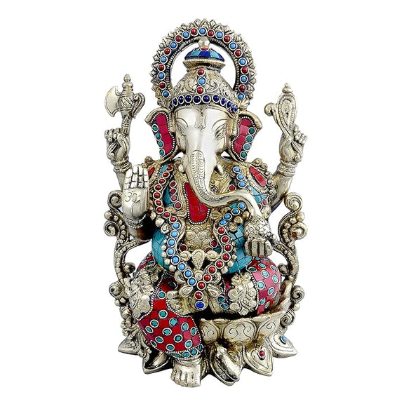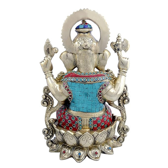 Introducing the exquisite Brass Chaturbhuja Ganesha, standing tall at 12.9 inches. Adorned in a beautifully carved dhoti, this elegant deity exudes a sense of opulence and luxury. Crafted with intricate details, this piece will add a touch of sophistication to any room. Bring home this divine masterpiece and elevate your decor.