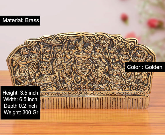 Brass Comb with the Figures of Radha Krishna and Gopis (Height 3.5 Inch)