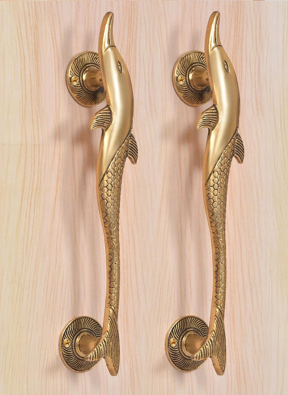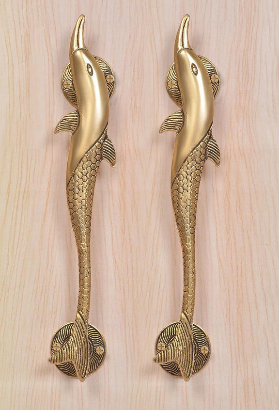Brass Dolphin Fish Design Door Handle Pair (Pack of 2) (Height : 12 inch)