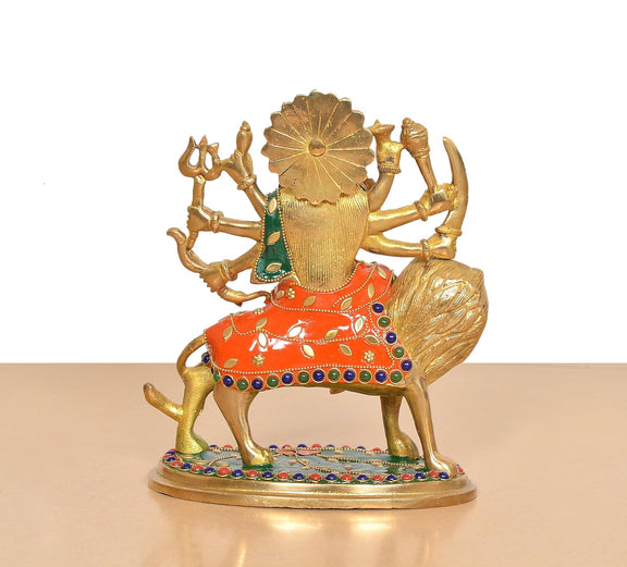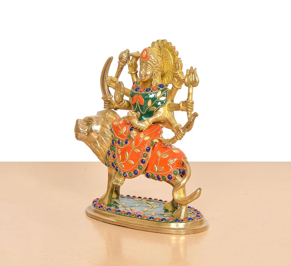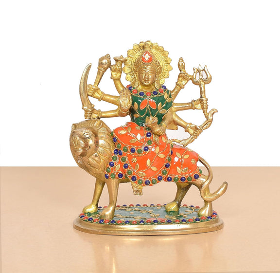 Brass Durga Maa with Lion Idol (Height: 7.5 Inch)