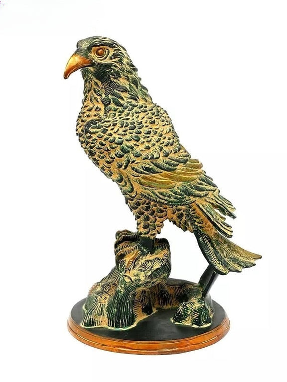 Elevate your home decor with this stunning Brass Eagle Figurine, standing tall at 15 inches. Hand-crafted with intricate details, this majestic eagle will add a touch of elegance to any space. Perfect for bird lovers and collectors. Make a powerful statement with this striking piece!
