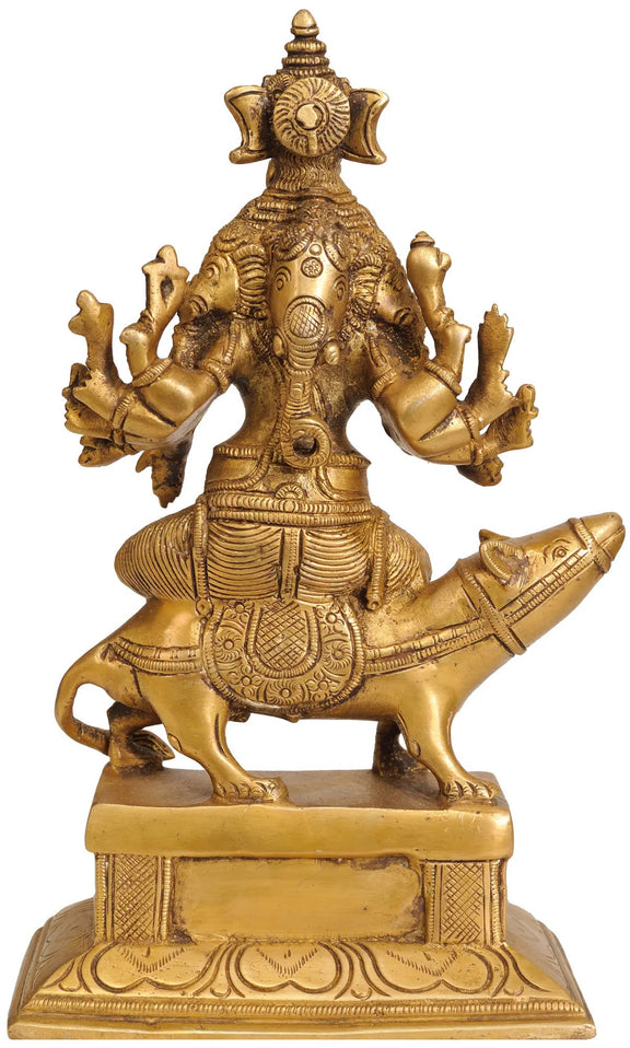 Brass Five Headed Lord Ganesha Seated on His Mount