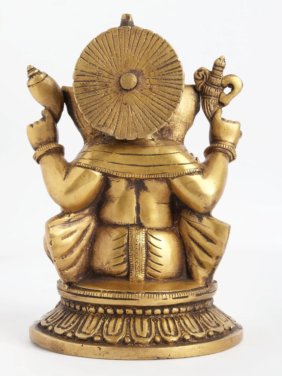 Brass Four-Armed Seated Ganesha Statue Granting Abhaya 8 Inches