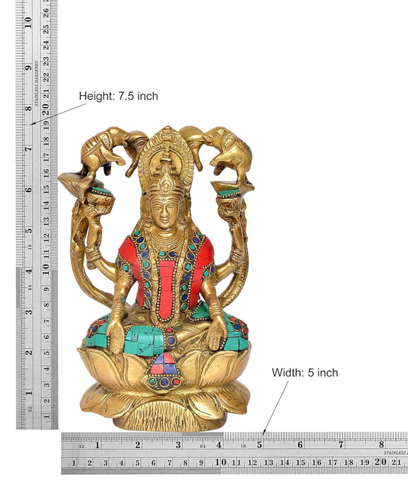 Brass Gaja Lakshmi Statue Laxmi with Elephants Home Temple Office Figurine Showpiece (Height 7.5 Inch)