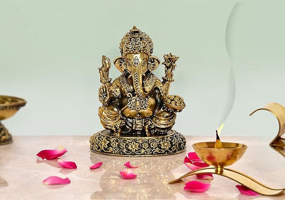 Brass Ganesha Brass Statue Idol for Home Decor Mandir | Height : 5 inch