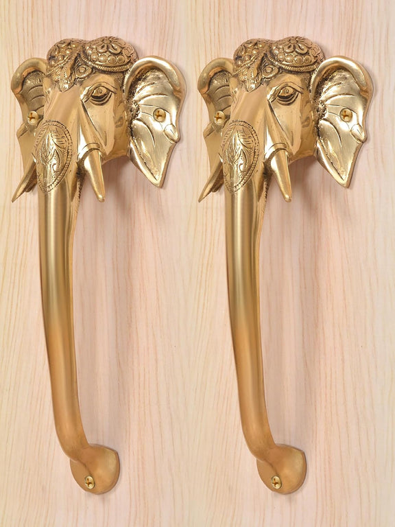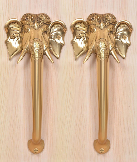 Brass Ganesha Face Door Handle Pair (Pack of 2) (Height : 11.5 inch)