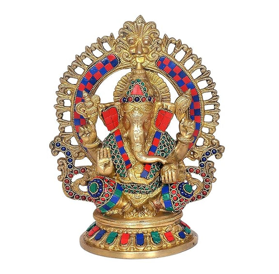 Brass Ganesha Ganesh Murti Statue Idol for Home Shop Office, Height : 10 inch