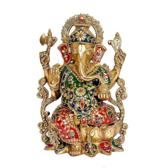 Brass Ganpati On Lotus (Height : 12 Inches)
