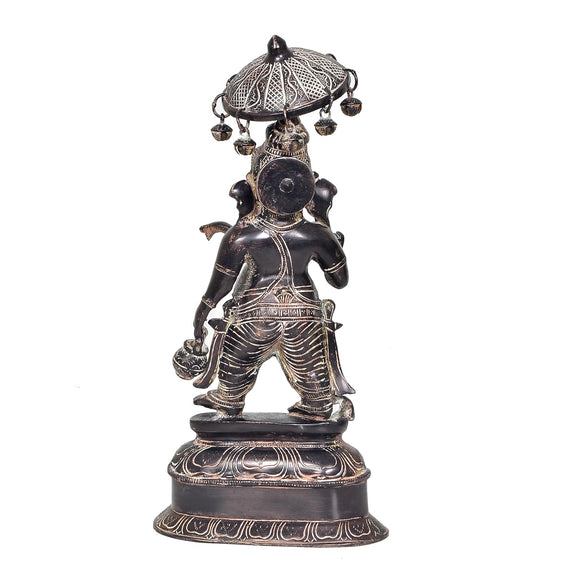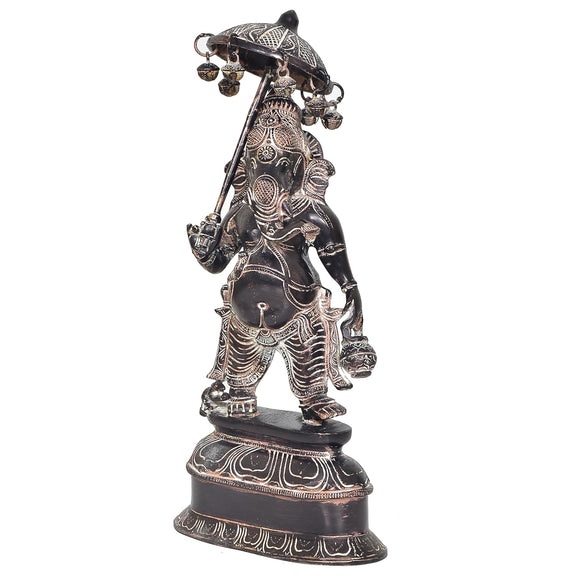 Brass Ganesha Holding Parasol in One Hand Statue (Height:15 Inch)