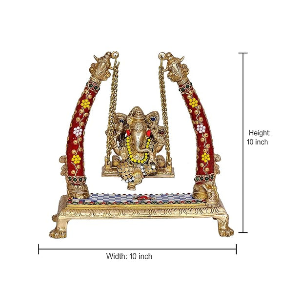 Brass Ganesha Playing On Swing Ganesha Jhula Decorative Showpiece Multicolour (Height 10 Inch)