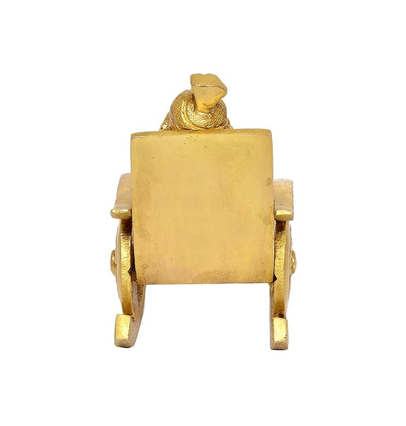 Brass Ganesha Statue Book Reading Turbaned Ganesh Sitting on Chair Sculpture Golden (Height 5 inch)