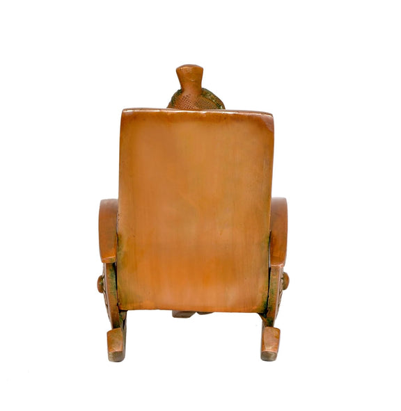 Brass Ganesha Statue Book Reading Turbaned Ganesh Sitting on Chair Sculpture Statue for Home Temple Decor (Height 6.5 inch)
