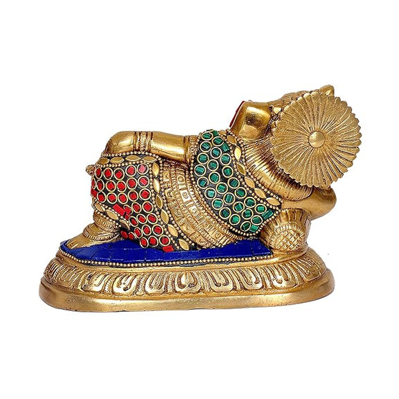 Brass Ganesha Statue Idol in Resting Position for Home Decor | Height : 4.5 inches (Blue Multi)