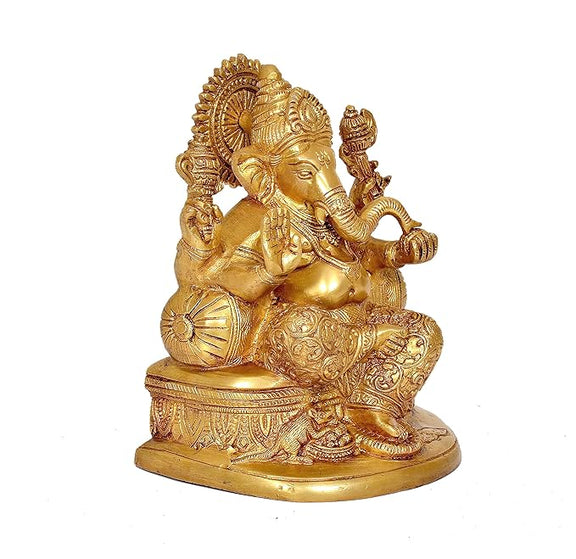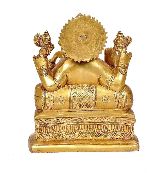 Brass Ganesha sitting on Singhasan Statue (Height: 8 inches)