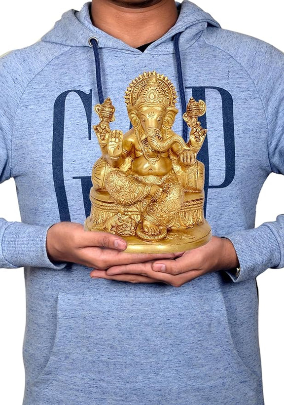 Brass Ganesha Statue Idol On Base Giving Blessings for Home Decor Temple | Height : 8 inches