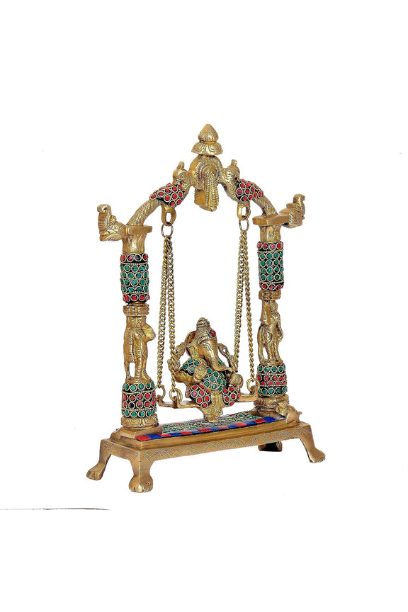 Brass Ganesha Jhula with Stone Work (Height : 12 Inches)