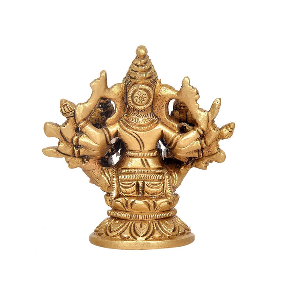 Brass Ganesha with Riddhi and Siddhi Idol - Hindu Deity Statue for Home Temple (Height : 3 inch)