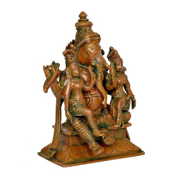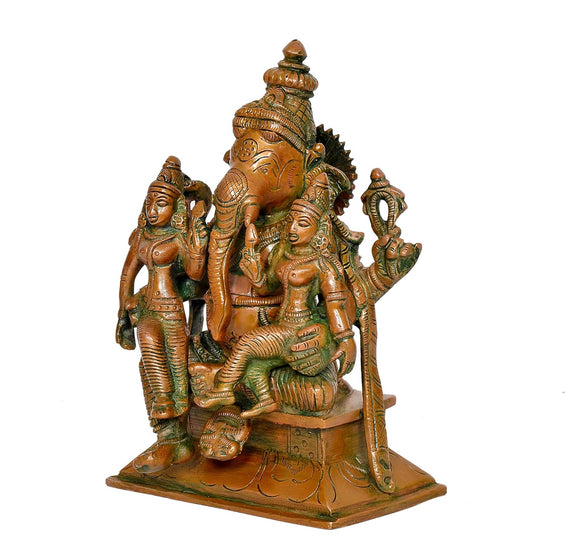 Brass Ganesha with Riddhi and Siddhi Idol - Hindu Deity Statue for Home Temple (Height : 7 inch)
