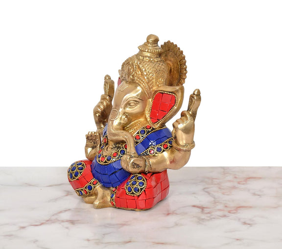 Brass Ganpati Bappa Murti (Height: 6 Inch) (Multicolor)