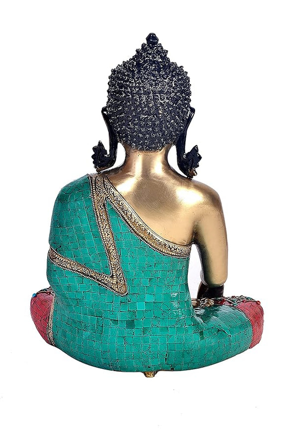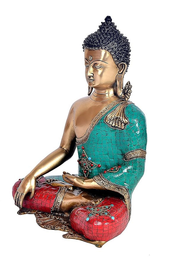 Brass God Idol Gautam Buddha Brass Statue Sitting Position Draped in Shawl H - 16.5inch Weight: 8.670 Kg,Multicolour