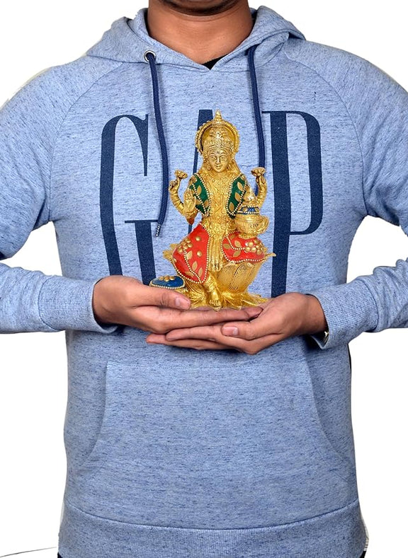 Brass Goddess Laxmi Sitting on lotus (Height: 7 Inch)