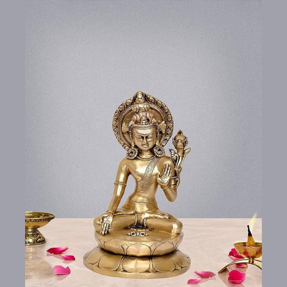 Bring the divine aura of Lord Indra into your home with this beautifully crafted Brass Inder Dev Statue. Perfect for pooja rooms or as a home decor piece, it stands at 12 inches tall and exudes strength and prosperity. Add a touch of elegance and spirituality to your space with this mesmerizing sculpture.