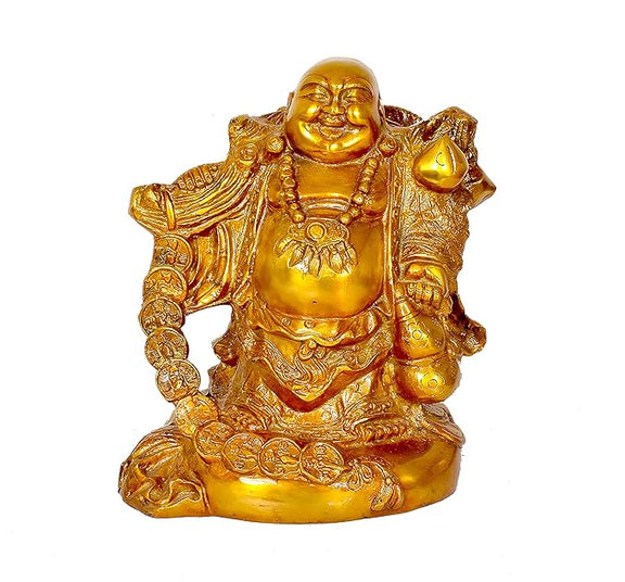 Brass Laughing Buddha Statue for good luck (Height: 10 inches)