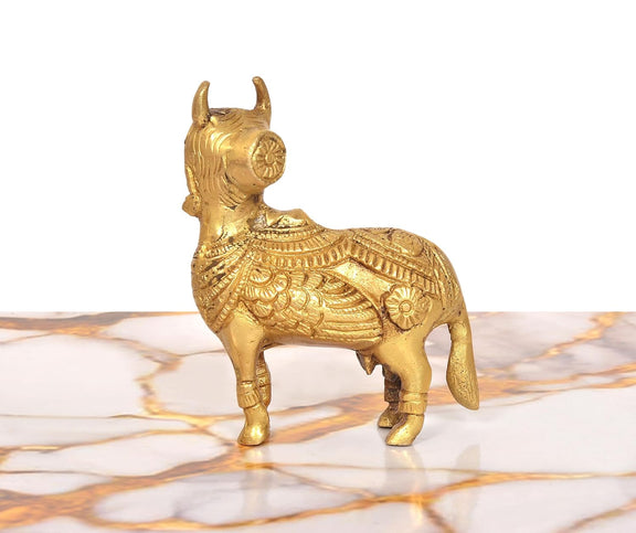 Brass Kamdhenu Cow Statue (Height: 4 Inch)
