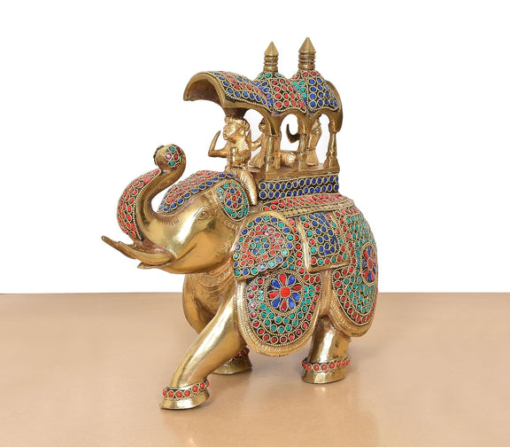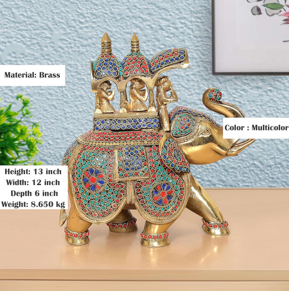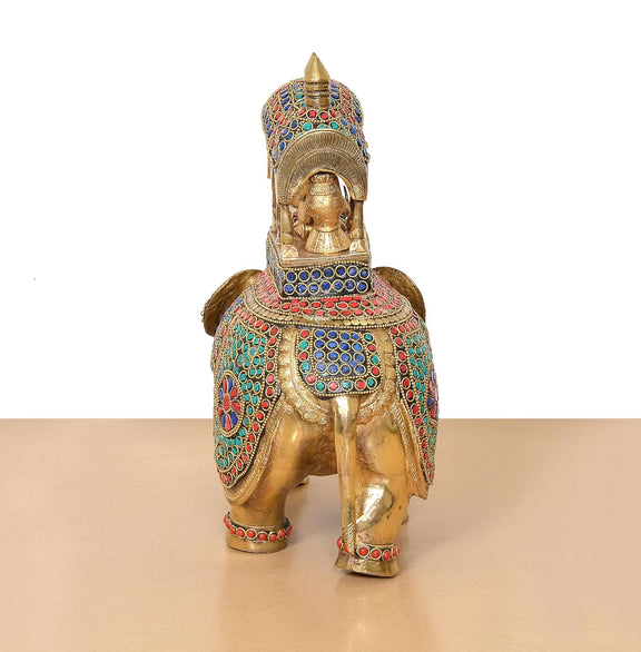Brass King Riding on Elephant statue (Height: 13 Inch)