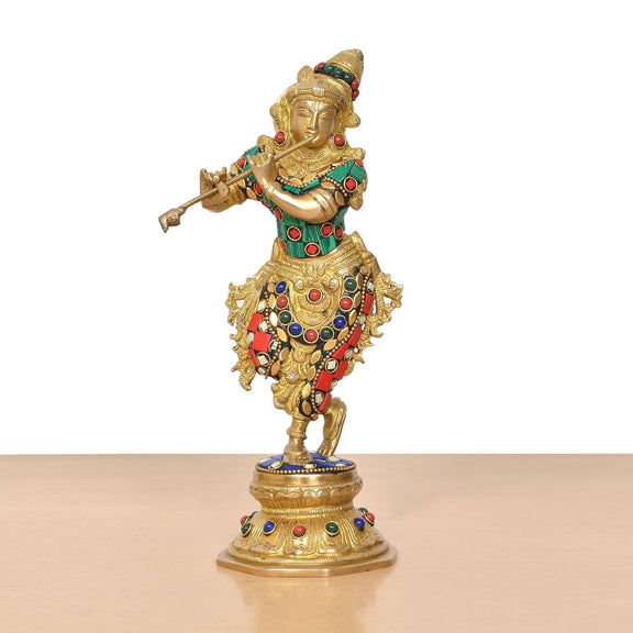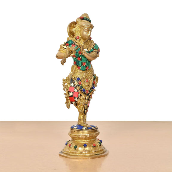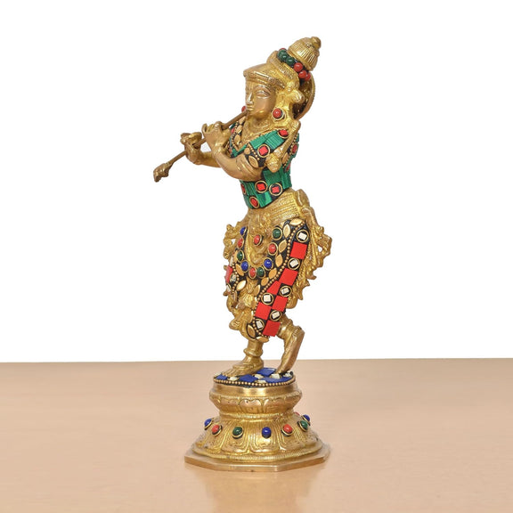 Brass Krishna with Flute Statue (Height 9.5 Inch)