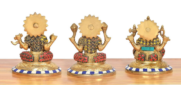 Brass Lakshmi Ganesh Saraswati Idol (Height: 5 Inch)
