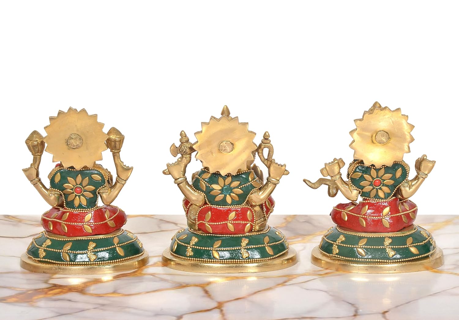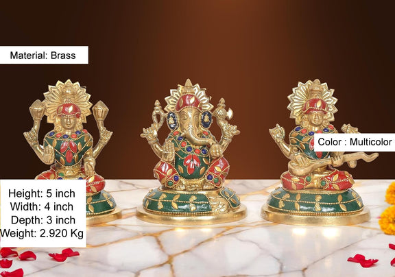 Brass Lakshmi Ganesh Saraswati Idol (Height: 5 Inch) (Multicolor 1)