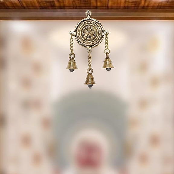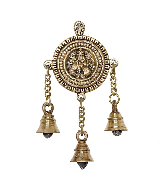 - Brass Lakshmi Hanging with Bells - Hindu Home Decor | Traditional Lakshmi Wall Hanging | Spiritual Decorative Bells for Sacred Space, Prayer Room, or Entrance"