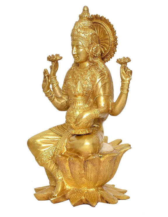 Brass Lakshmi Idol Laxmi Goddess Lakshmi Sitting on Lotus Statue for The Puja Temple at Home Decor Office (Height: 12 Inch)