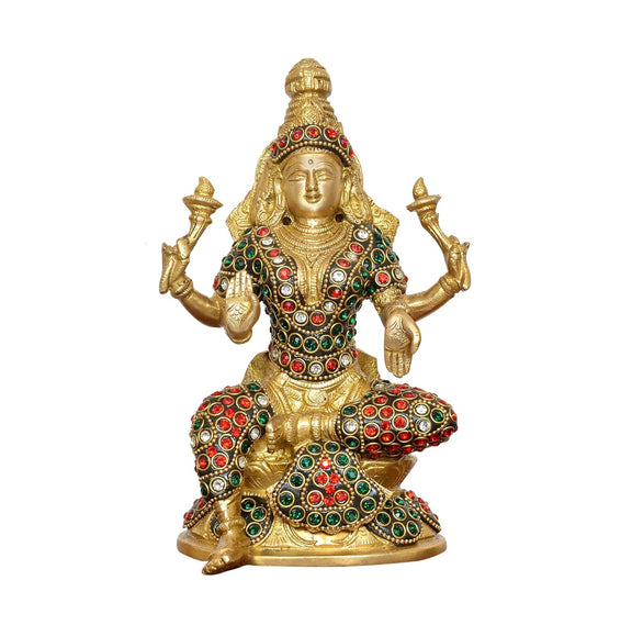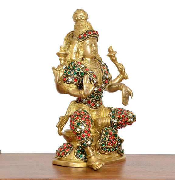 Brass Lakshmi Idol Laxmi Goddess Lakshmi Sitting Statue for The Puja Temple at Home Decor Office (Height: 8 Inch)
