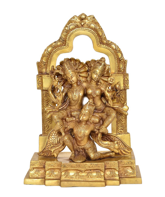 Add a divine touch to your home or office with our exquisite Brass Lakshmi-Narayana on Garuda Statue. Standing at 12 inches tall, this stunning statue is perfect for puja ceremonies or as a decorative piece. Let the blessings of Lakshmi and Narayana fill your space and bring prosperity to your life