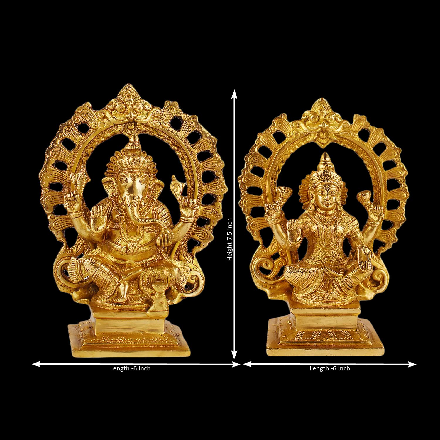 Celebrate divine blessings with this beautiful 7.5-inch brass idol of Laxmi and Ganesh seated together. Crafted with care, it brings a loving presence to your sacred space, inviting prosperity and wisdom into your home. Its elegant posture and fine detailing make it a perfect centerpiece for prayer or gifting to loved ones.