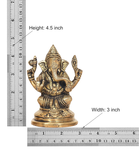 Brass Laxmi Ganesh Statue - Handcrafted Goddess Lakshmi and Lord Ganesha Idol for Home Decor and Pooja - Hindu Deities Figurine (Height 4.5 Inch)
