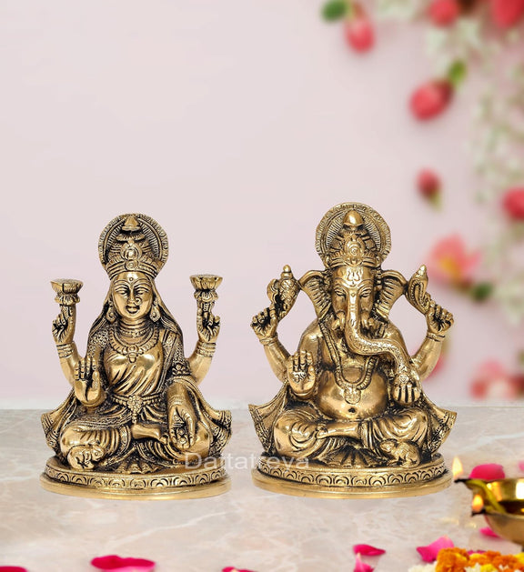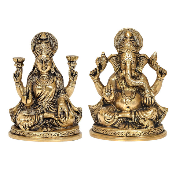 Brass Laxmi Ganesh Statue - Handcrafted Goddess Lakshmi and Lord Ganesha Idol for Home Decor and Pooja - Hindu Deities Figurine (Height 5.5 Inch)