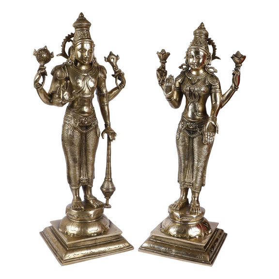 Brass Laxmi Narayana Murti for Home Puja Handmade Standing Lakshmi Vishnu Idol Showpiece Figurine Height 20 Inches