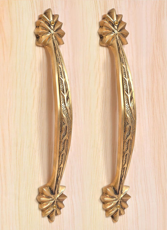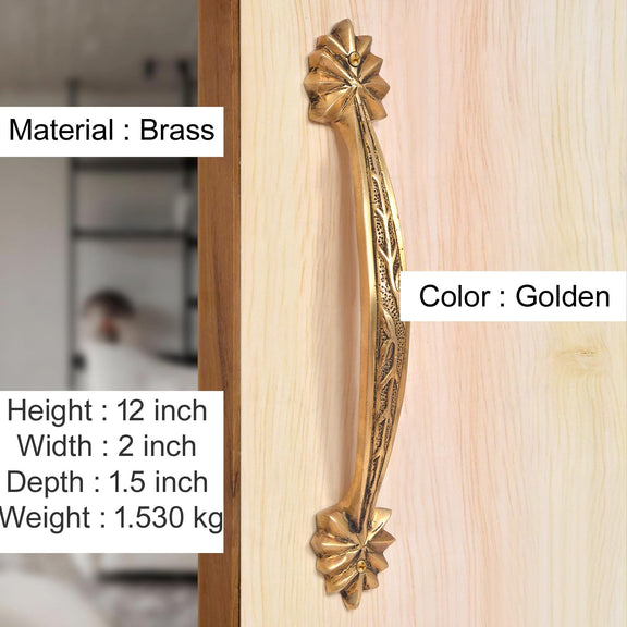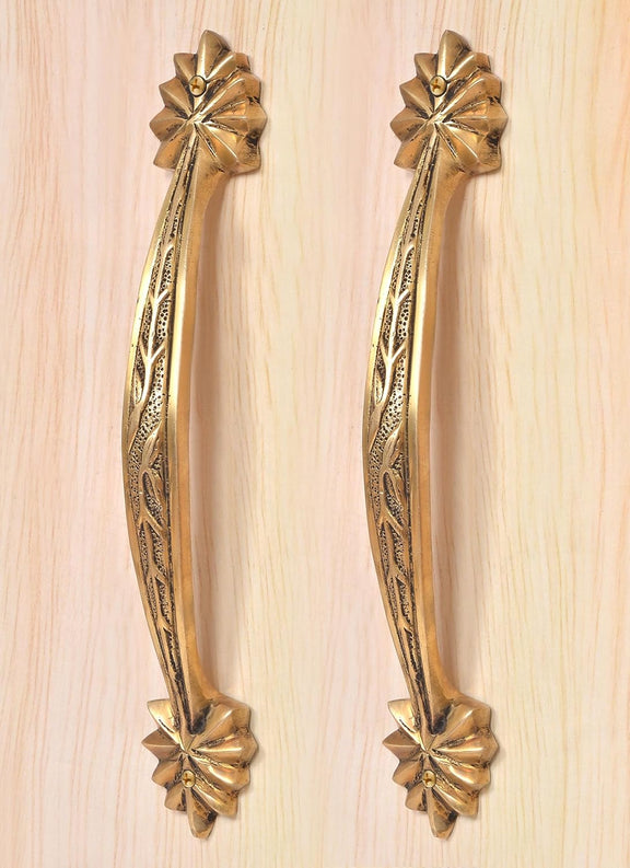Brass Leaf Carved Design Main Door Handle Pair (Pack of 2) (Height : 12 inch)