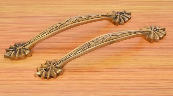 Enhance your home’s entrance with this beautiful pair of brass door handles, each standing 12 inches tall. Featuring an intricate leaf carving, these handles add a warm, elegant touch to your main door. Crafted from durable brass, they promise lasting charm and strength, welcoming guests with a loving, timeless appeal. Perfect for those who appreciate artistry and quality in every detail.