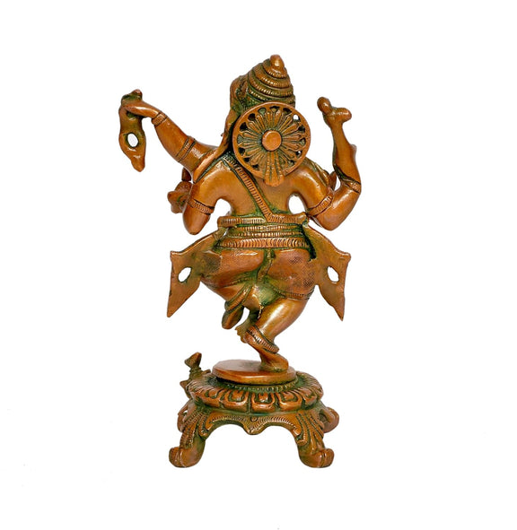 Brass Lord Dancing Ganesha Murti - Religious Statue for Home Temple (Height 7.5 Inch)